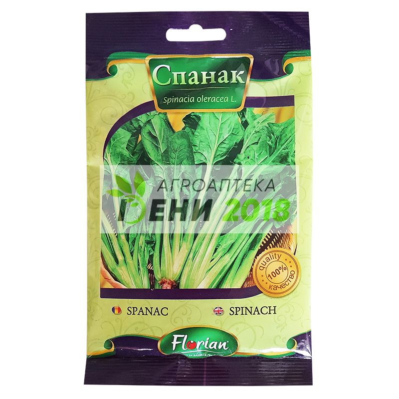 Спанак Матадор. Този сорт спанак е един от най-популярните и е с много вкусни листа. Спанакът е тревисто растение от семейството на ряпата. Отглежда се като листен зеленчук. Листата му са богати на белтъци, железни и калциеви соли и витамин A, B1, B2, C (аскорбинова киселина) и PP. Освен това спанакът съдържа витамини К, Р, Е и микроелементи -калий, калций, магнезий и йод. Една от особеностите на витамините С и А в спанака е че не се разрушават при варене. Младите листа на спанака се използват както сурови, така и варени или задушени и разбира се консервирани. Най полезни са разбира се пресните листа в суров вид – от тях се приготвят превъзходни салати и сокове. Сокът от спанак е прекрасен диетичен продукт. Мийте спанакът непосредствено преди употреба защото измит се разваля бързо. Сокът от спанак е превъзходен натурален оцветител – придава на ястията наситен зелен цвят. Спанакът запазва най-добре витаминното си съдържание, като се здушава с слънчогледово масло в захлупена тенджера. Практиката да се попарва спанакът в кипяща вода и след това да се изхвърля водата е погрешна, защото се губят много минерални водноразтворими соли и витамини. Солите на желязото в спанака са в лесно усвоима форма и затова той се препоръчва при болни от малокръвие и общо изтощение. Пресният сок от спанак, лапад и коприва е особенно ценен за болни от анемия. Вегетационен период: 40-70 дни Указания за отглеждане: Сеитба: Лятно-есенно засяване – от средата на август до средата на ноември (или до замръзване на почвата) Пролетно засяване – от края на февруари до средата на март Дълбочина на сеитба: 2-4 см Сеитбена норма: 2,5 – 3 кг/дка (12-16 хил. растения в дка) Разфасовка: 50 гр Семена в 1гр : 100 бр. Семена в една опаковка: 5000 бр.