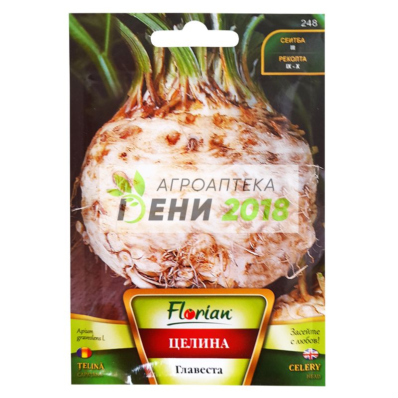 Целина Главеста . Много студоустойчиво и влаголюбиво растение. Образува плътна розетка с едри, тъмнозелени листа. Кореноплодът е кръгъл, с крехка месеста част и специфичен аромат. Вегетационен период 115 - 120 дни. Брой семена в 1 г - около 2600 бр. Сеитбена норма - 2 - 3 г/100 м². Отглежда се чрез разсад. Засява се: края на м.02 - средата на м.03. - за отглеждане в отопляеми оранжерии средата на м.03 - средата на м.04 - за отглеждане на открито. Сее се разпръснато. След сеитбата семената се покриват с много тънък (0,5 см.) пласт торопочвена смес или биотор от червен калифорнийски червей. Семената поникват за около 20 дни при температура 25ºС. Разсадът е готов след около 60 - 70 дни. Разсажда се на ниски лехи - фитарии. на разстояние 40 х 25/30 см. Оптимална температура за развитие и растеж 18 - 20ºС. Препоръчват се 1100 - 1200 бр. растения на 100 м². Разфасовки: 2 г, кг. Торене: Есен: с основната обработка на почвата се внасят 300 - 400 кг/100 м² - разложен оборски тор или 30 - 40 кг./100 м² - биотор от червен калифорнийски червей и минерални торове: 2- 3 кг./100 м².- троен суперфосфат и 1,5 - 2 кг./100 м² - калиев тор. При окопаване поне два пъти се подхранва с амонива селитра - 1 - 1,5 кг./100 м².