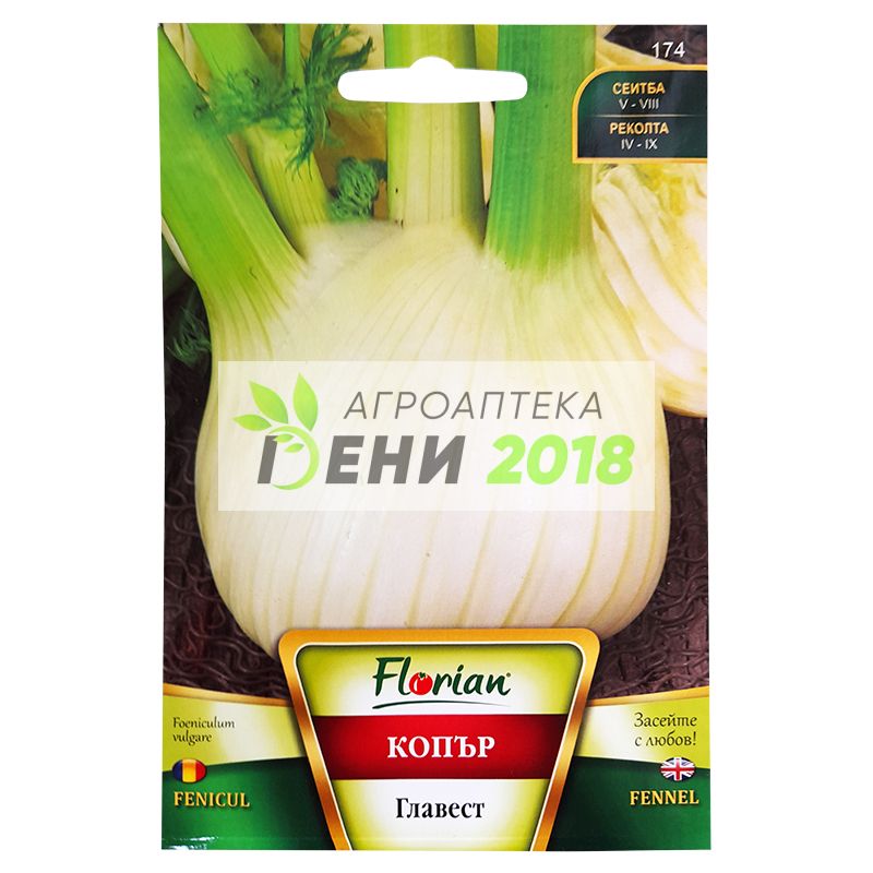 Семена на главест копър . Това интересно растение е много популярно и използвано за приготвяне и овкусяване на различни видове ястия. Основното предимство на главестия копър е, че може да използвате от него цялото растение. Стъблата и листата се използват като подправка за овкусяване на таратор, различни видове салати, сосове с майонеза, за приготвяне на така популярните в България кисели краставички и мн. др. Интересното на копъра е, че той образува едра луковица (глава). От там идва и наименованието му - главест копър. Главата е кръгла с тегло от 500 гр. до 1,5 кг сочна и хрупкава. Луковицата се използва за консумация в сурово състояние, като от нея се приготвят салати, подобно на тези от главеста целина или стръкова целина (селъри). Може да се вари и пече, като има идеално съчетание с рибни ястия и специалитети. ...