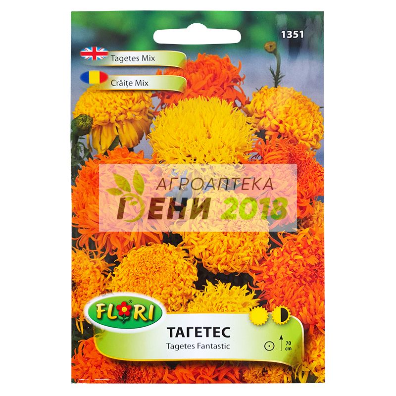 ТАГАТЕС /Tagetes L./ Наименованието на рода е свързано с гръцката митология. Tagates се е наричал внукът на Юпитер. Произхожда от Централна и Южна Америка. Към род Tagets принадлежат около 20 вида, но за цветарството имат значение видовете Tagates erecta L., Tagetes patula L. I Tagetes signata. Всички те са едногодишни растения. Опаковка: 1 г / в 1 г има около 300 семена / Засяване: март – април Поникване: 7 – 10 дни Цъфтеж: юни – ноември Височина: 50-70см. Особености: Тагетесите се размножават чрез семена, които се засяват в края на март и началото на април в студени парници. Поникват за около седмица. Не се пикират, а направо се разсаждат на постоянно място. Могат да се сеят и директно на място. Нападат се силно от голи охлюви при влажно време и трябва да се води навременна борба с тях. Цъфтят от юни до късна есен до падането на сланите. Изисквания: Тагетисите са невзискателни растения. Развиват се най-добре на открити, слънчеви места, но понасят и полусянка. Обичат богати, но отцедливи почви. Повреждат се от сланите. Есенните дъждове пречат на узряването на семената