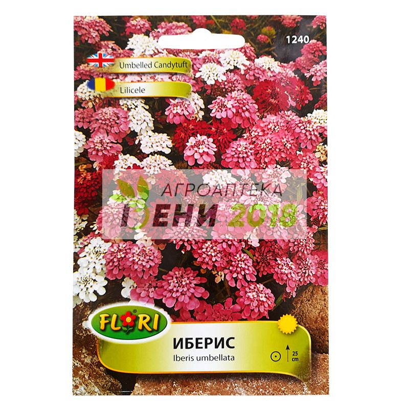 Иберис . Представяме на вашето внимание един представител на цветята с летен, обилен и много ароматен цъфтеж - семена от Иберис умбелата (световно познат още със своето латинско име Iberis umbellata). Иберисът е изключително красиво цвете, което се отглежда много лесно, а на всичко отгоре има невероятно обилен цъфтеж и приятен аромат. Иберисите спадат към род Iberia, което пък е древното име на Испания, а самото име на растението произлиза от латинското име "umbel", което в превод означава чадър. Това си име Ибериса получава заради своите съцветия, които по форма са досущ като чадъри. Може да се срещне в естествено състояние в Испания, Гърция, България, части от северна Америка. От този прекрасен микс семена ще получите изключително красиви едногодишни цветя, които достигат височина до 25 см. Листата им са свежо зелени, а по форма са линейно - копиевидни. Образуват чадъровидни съцветия. Отделните цветчета са обагрени в бяло, розово и лилаво.