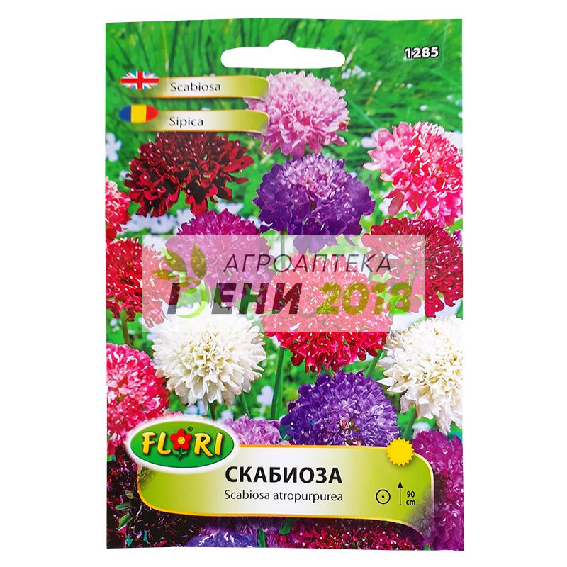 СКАБИОЗА ГРАНДИФЛОРА МИКС /Scabioza L./ На латински името на рода означава – грапаво, поради негладката повърхност на съцветието. Произхожда от Европа и Азия. Засяване: април Цъфтеж: юли - октомври Височина: 90см. Особености: Скабиозата е едногодишно растение, което се размножава чрез семена, които се засяват през април в студен парник или на открито. Растенията имат тънки тревисти стъбла, леко овласени, достигащи 90см. височина. Долните листа са широки, едро нарязани, а горните – перести, с линейно ланцентни дялове. Цветчетата са събрани в полусферични съцветия, разположени на дълги дръжки. Най-голямо значение имат сортовете grandiflora, които са с едри, кичести цветове. Отглежда се за рязан цвят и за засаждане в цветни групи. Изисквания: Скабиозата изисква открити слъневи места и леки, градински почви, съдържащи вар.