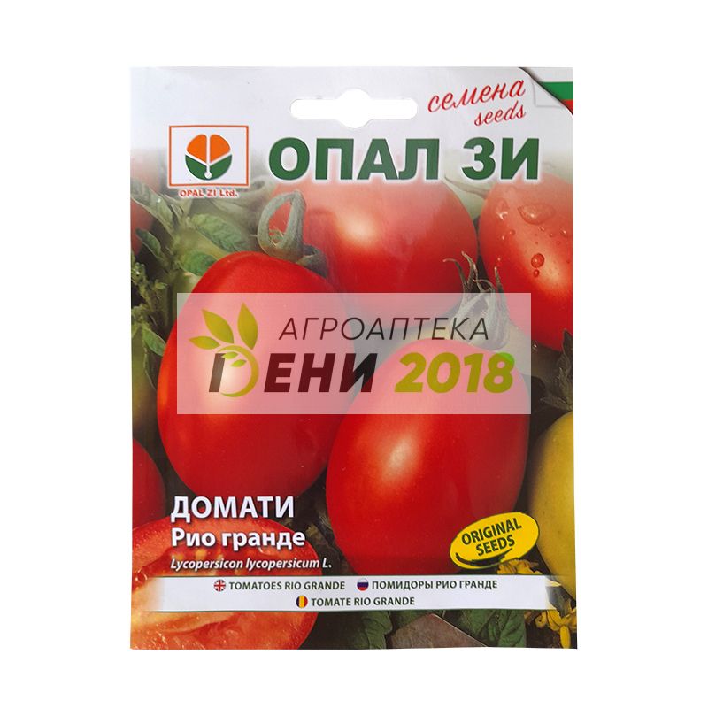 Домат Рио Гранде. Този сорт е средно ранен безколов, с вкусни плодове и изключително високодобивен сорт. Високодобивен средно ранен детерминантен сорт. Плодовете са овално-продълговати с интензивен червен цвят и средно тегло 90-100 гр., твърди, с добри вкусови качества. Едно от най-големите предимства на този сорт домати е отличната съхраняемост. Това го прави предпочитан за масово производство, с цел търговия и износ. Този домат е с високи вкусови качества, твърд е и е устойчив на транспортиране. Доматите се използват за сурова консумация и за производство на консерви. Поради високия добив голяма част от производителите на консерви и търговци на едро и дребно ги предпочитат за отглеждане. За максимален плододобив добавяйте специализирани торове. Нуждаят се от торене с калий, азот и фосфор и от редовна поливка. Вегетационен период: 120-125 дни. Указания за отглеждане: Тип производство: Ранно, Средно, Късно, Без разсад Срок на сеитба: Ранно – 20 януари –25 февруари Средно – 1–30 март Късно – 25 април–10 май Без разсад – 1–10 април Дълбочина на сеитба: Ранно – 1–1,5 см Средно - 1–1,5 см Късно – 2–3 см Без разсад - 2–3 см Разстояние: Ранно – 80/120x35/45 см Средно – 80/120x35/45 см Късно – 80/120x35/45 см Без разсад – 120x40/20 см Сеитбена норма: Ранно – 25-30 гр/дка Средно – 30-40 гр/дка Късно – 30-40 гр/дка Без разсад – 0,150 кг/дка Разфасовка: 1 гр Семена в 1гр : 280 - 300 бр. Семена в една опаковка: 280 - 300 бр.
