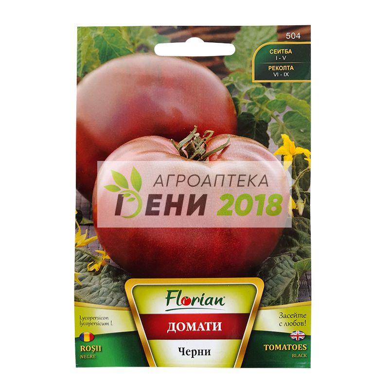Семена за Черни домати (рядък сорт) . Тези домати са уникални на вкус и много атрактивни със своя наситен тъмно махагонено-кафяв цвят. Средно ранен индетерминантен сорт домати, характеризиращ се с компактно растение, отрупано със средно едри около 140-160 гр. плодове, с тъмно махагонено-кафяв цвят и с вкусно съчетание от сладък и кисел вкус. Вегетационен период: 70-75 дни Указания за отглеждане: Тип производство: Ранно, Средно, Късно Срок на сеитба: Ранно – 20 януари –25 февруари Средно – 1–30 март Късно – 25 април–10 май Дълбочина на сеитба: Ранно – 1–1,5 см Средно - 1–1,5 см Късно – 2–3 см Разстояние: Ранно – 80/120x35/45 см Средно – 80/120x35/45 см Късно – 80/120x35/45 см Сеитбена норма: Ранно – 25-30 гр/дка Средно – 30-40 гр/дка Късно – 30-40 гр/дка Разфасовка: 0,5 гр Семена в 1гр : 250 - 350 бр. Семена в една опаковка: 125 - 175 бр.