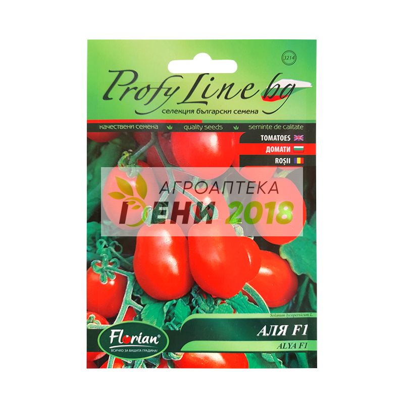 Домати Аля F1 (тип чери) . Този сорт домати е тип чери, със средно големи плодове, наситено червени на цвят, много вкусни и с високо съдържане на сухо вещество. Чери домати сорт Аля са индетерминантен (за отглеждане на колове или опорна конструкция) сорт домати, тип чери. Плодовете тежат средно около 12-18 грама. Формата им е овално-продълговата, много интензивно червени, непукливи, твърди и с много добре балансиран приятен сладко-кисел вкус. Имат сладко-кисел вкус. Имат и висок процент сухо вещество – 8,5-9,5%. Доматите са предназначени за прясна консумация, както и за сушене или замразяваме. Сорта има много устойчивости - тютюнева мозайка, вертицилийно и фузарийно увяхване. Толерантен е към нематода. Доматът „Аля" е селектиран по естествен път. За създаването му са използвани само типично български сортове. Аля е създадена от пловдивски учени-ентусиасти, които се противопоставят на генно-модифицираните зеленчуци. Според д-р Даниела Ганева от Института по зеленчукови култури в Пловдив Аля е българската алтернатива на чуждите сортове черита и ако родните фермери я предпочетат, цените на малките доматчета в търговската мрежа ще се смъкнат чувствително. За създаването на Аля са били необходими 8 години тежък изследователски труд. Вегетационен период: 108 -110 дни Указания за отглеждане: Срок на засяване: средно ранно 15 януари – 25 февруари Срок на разсаждане: Средно ранно – 25 март – 20 април Дълбочина на сеитба: 1 – 1,5 см Схема на разсаждане: едноредово: 120/60 Сеитбена норма: 20-25 гр/дка Разфасовка: 0,2 гр. Семена в 1гр : 280 - 350 бр. Семена в една опаковка: 56 – 70 бр. Произход: България
