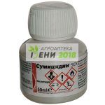 Сумицидин 5 ЕК. Механизъм на действие: несистемен пиретроиден инсектицид с контактно и стомашно действие РАЗРЕШЕНИ УПОТРЕБИ Овощни - Ябълков плодов червей, Източен плодов червей, Кръгломиниращ молец, Червена пъпкозавивачка, Сива пъпкозавивачка, Малка зимна педомерка, Черна сливова плодова оса, Сливов плодов червей, Анарзия (Прасковен молец) - 0.02%; Крушова листна бълха - 0.03%Хризантема - Листни въшки - 0.02% Пипер- Зелена прасковена листна въшка - 0.02% (за оранжерийно производство) и 20мл/дка (за полско производство) Краставици (оранжерийно производство) - Памукова листна въшка - 0.02% Лозя - Шарен гроздов молец - 0.025% Картофи - Колорадски бръмбар - 15мл/дка Люцерна за семе - Грахова листна въшка, Петниста листна въшка, Педомерки – ларви, Люцернов листояд, Люцернов листов хоботник (ларви), Пъпкова галица, Цветова галица, Маков листояд - 20мл/дка Житни - Вредна житна дървеница, Обикновена житна пиявица - 25мл/дка Захарно цвекло - Цвеклови бълхи - 25мл/дка; Зелева нощенка - 40мл/дка Зеле - Зелева нощенка, Зелев молец - 25мл/дка Грах - Грахов зърнояд - 25мл/дка Пасища - Ливадна пеперуда (II-ра и III-та възраст) - 25мл/дка; Ливадна пеперуда (IV-та и V-та възраст) - 30мл/дка; Марокански скакалец, Италиански скакалец - 40мл/дка Маслодайна рапица - Рапичен цветояд - 20-30мл/дка Тютюн - Тютюнев трипс - 50мл/дка; Зелена прасковена листна въшка - 80мл/дка Карантинен срок (дни): 14; 35 за маслодайна рапица