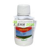 Зенкор 600 СК. Механизъм и спектър на действие: селективен, системен, почвен и вегетационен хербицид за борба с едногодишни широколистни и някои житни плевели РАЗРЕШЕНИ УПОТРЕБИ Картофи - След засаждане преди поникване – 75-90мл/дка; След поникване – 45-60мл/дка; Преди поникване – 60 мл/дка + След поникване – 30 мл/дка Домати (полско производство) - След сеитба преди поникване или вегетационно – във фаза 2-4 същински лист и след оформянето на лехите и тировете или 20 дни след разсаждане и добро вкореняване (3-4 същински лист – 46мл/дка Аспержи - Почвено преди поникване или след прибиране на реколтата - 90мл/дка Моркови (полско производство) - Вегетационно - 35мл/дка (еднократно или разделяне на дозата на две приложения без да се надвишава максималната доза/сезон) Моркови за семепроизводство - Почвено преди поникване - 76мл/дка Люцерна за семепроизводство - Почвено преди поникване - 90мл/дка РАЗРЕШЕНИ МИНИМАЛНИ УПОТРЕБИ Соя - Почвено преди поникване - 35мл/дка Моркови (полско производство) - Вегетационно (втори същински лист) - 60мл/дка Карантинен срок (дни): 7 дни за аспержи; 30 за домати; 42 за моркови (при доза на приложение 35мл/дка/сезон); 60 за картофи, соя, моркови (при доза на приложение 60мл/дка - разрешена минимална употреба); за моркови и люцерна за семепроизводство - не се изисква