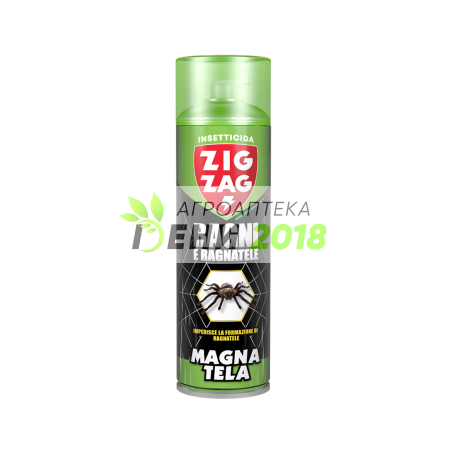 Zig Zag RAGNI e e ragnatele е инсектицид специално разработен да действа против паяци и образуването на паяжини. Има бърз първоначален ефект и продължително действие до 40 дни.